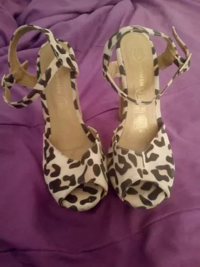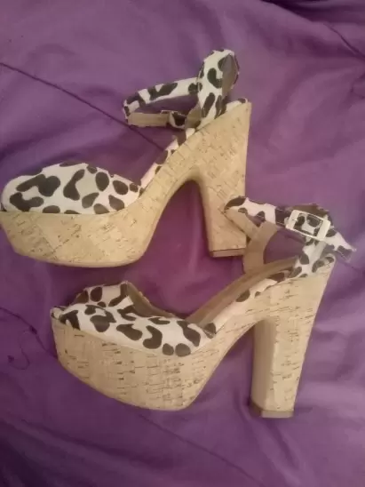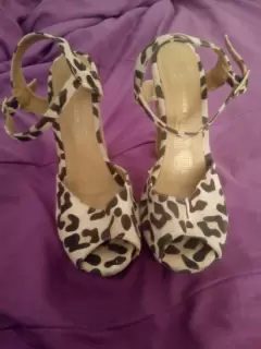 Zapatillas animal print en buen estado, talla 4 1/2, C&A, tacón 13cm