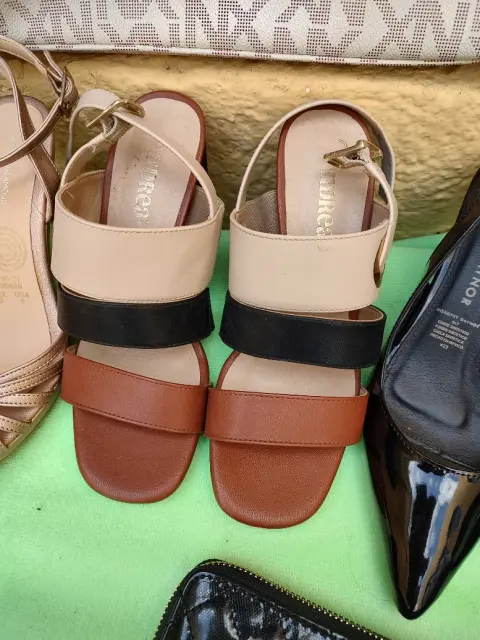 Carteras de dama, y zapatillas Andrea, doroty Gaynor, Loly, en talla 3.