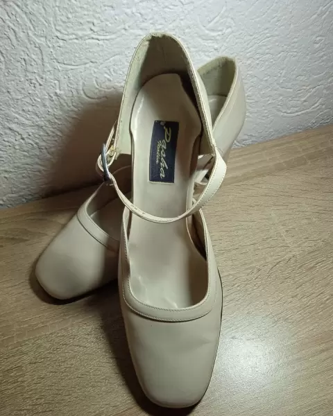 Zapatillas color negro Con pequeñas aberturas por delante cierre en talón y suela roja tacón del 7 excelente modelo muy coquetos Zapatillas color crudo o perla tacon del 5 ancho con correa excelente condiciones