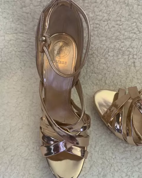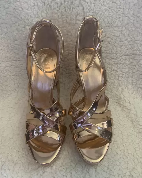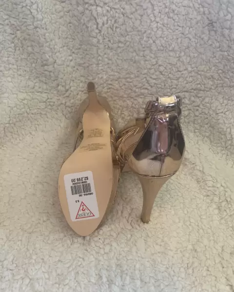 GUESS TACONES. Tacones dorados, GUESS, nuevos, originales, número 5 1/2 mexico plataforma de 3cm Tacón de 13 cm planta 25.5 cm