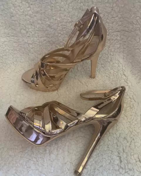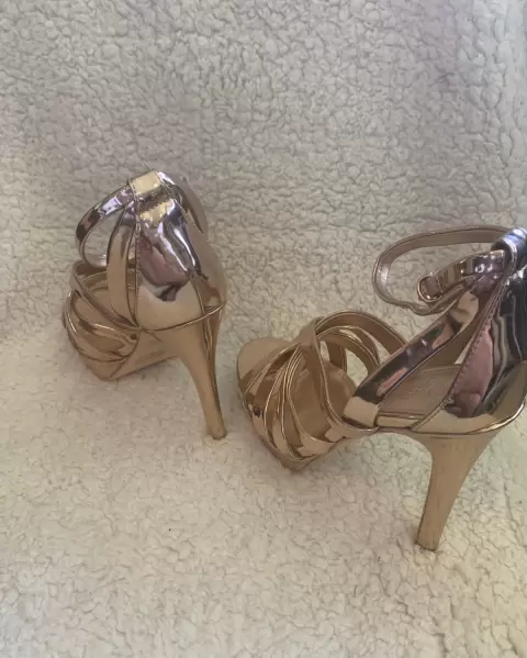 Tacones dorados, GUESS, nuevos, originales, número 5 1/2 mexico plataforma de 3cm Tacón de 13 cm planta 25.5 cm