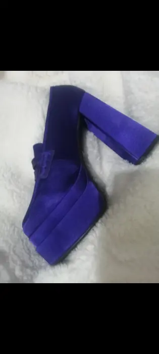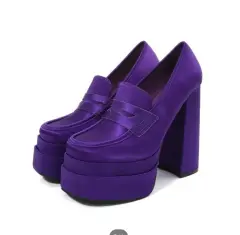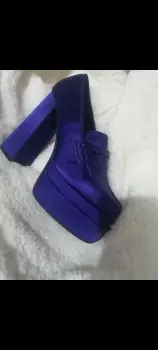 Hermosas plataformas color púrpura neon tacón grueso,terminado en satén en tendencia tamaño de tacón 14cm, bellísimas súper cómodas. Te verás divina con ellas