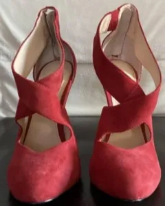 Hermosas zapatillas de tacón de aguja y plataforma de gamuza roja, casuales, super cómodas, nuevas, sin detalles, en perfecto estado ya que no han sido usadas.