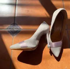 Bonitos zapatos de pico marca Paris Hilton, elefantes color lila… con un pequeño hilo en la parte de arriba, y en el tacón un detalle de piedra