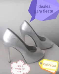 Elegantes zapatillas color plata. Estilizan tu pierna, tienen una altura de 12 cm. Ideales para fiesta con vestido largo, aunque también combinan con vestido de cóctel, falda lápiz y jeans. En buen estado. Son de piel cabra. Originalmente costaron $700.