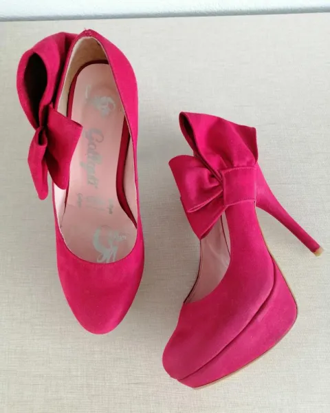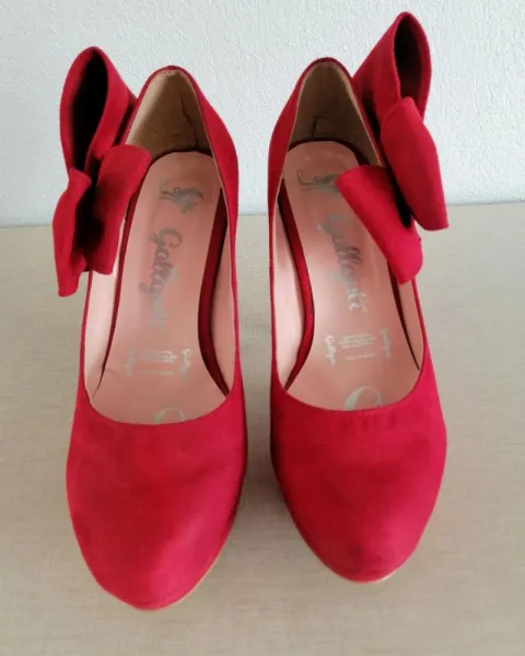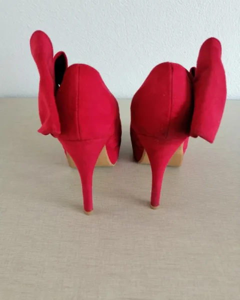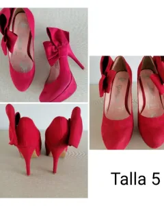 Hermosas zapatillas color rojo!Tacón 12 cmSe usaron poco, están en muy buen estado!Con hermoso detalle a los lados!