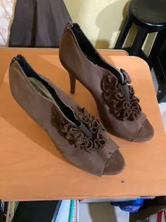 🌺lindas zapatillas color café, tipo botin, tienen un pequeño cierre en la parte de atrás. Son del número 5.