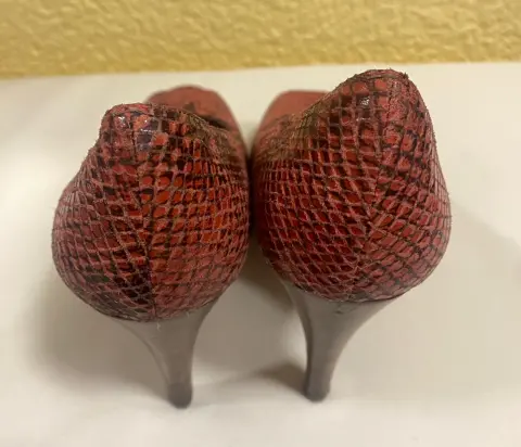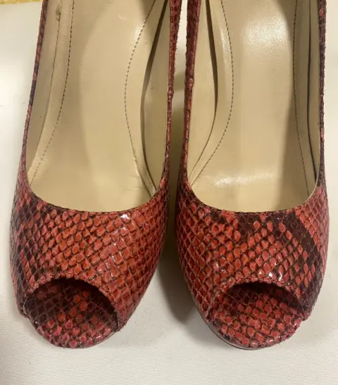 Zapatillas hermosas con textura de piel de víbora, rosa coral con maderaTacón de 11cm Son cómodos por la plataforma de 2 cmsCaja original