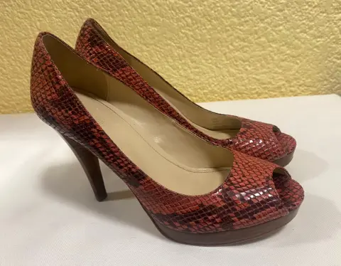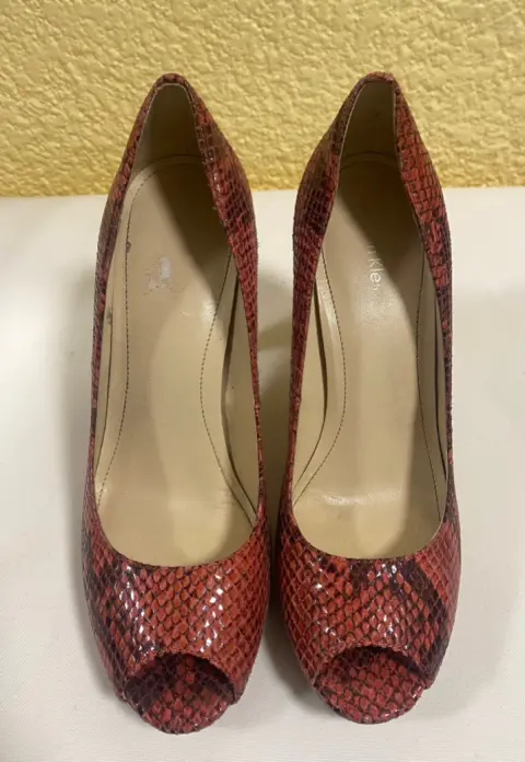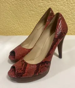 Hormosas zapatillas CK coral print. Zapatillas hermosas con textura de piel de víbora, rosa coral con maderaTacón de 11cm Son cómodos por la plataforma de 2 cmsCaja original
