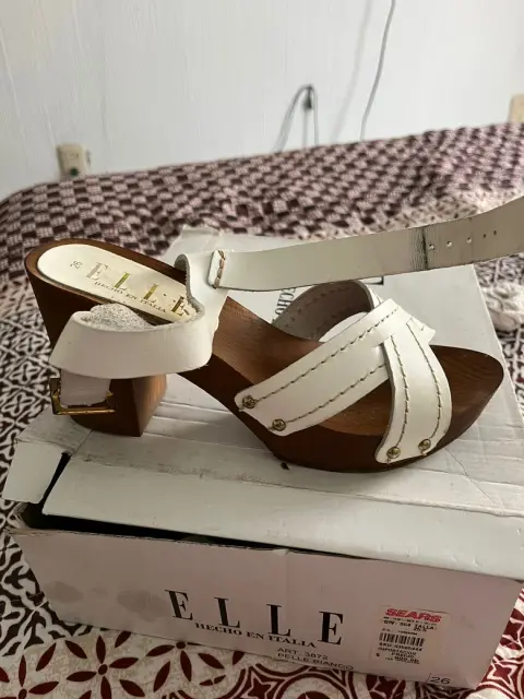 Huarache buen precio. Huarache sueco, color blanco, plataforma de madera liviano, sin detalles en número 5