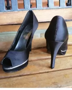 Lindas zapatillas negras. Lindas zapatillas negras abiertas de adelante super coquetas y Combinables, num 3 puestas una vez