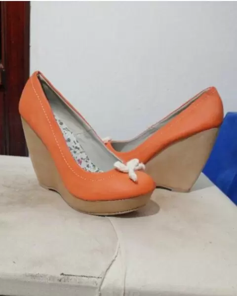 Lindos zapatos de tacón corrido color naranja. Lindos zapatos de tacón corrido color naranja, bellas para la primavera num 3 completamente nuevas