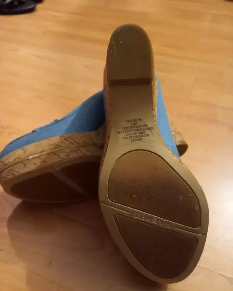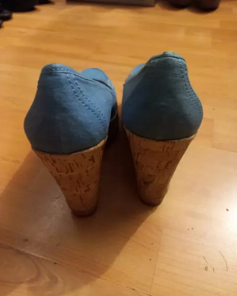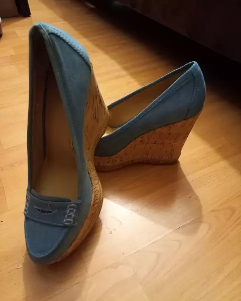 Lindísimos zapatos de plataforma corrida con diseño de corcho. Tipo mezclilla azul.Solo se usaron una vez.