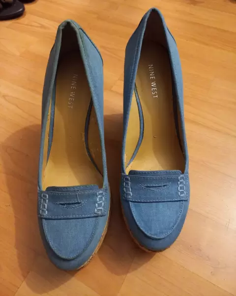 Nine West zapatos. Lindísimos zapatos de plataforma corrida con diseño de corcho. Tipo mezclilla azul.Solo se usaron una vez.