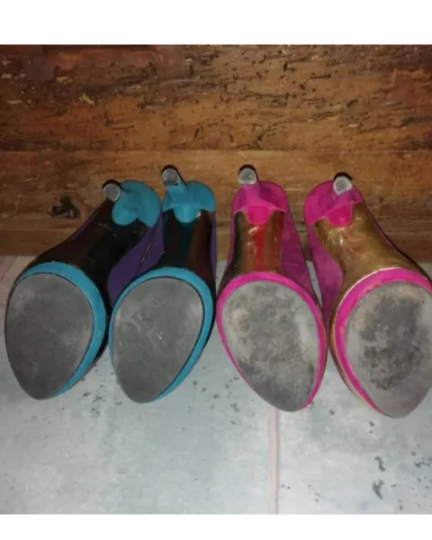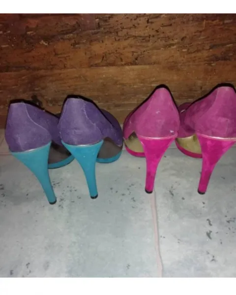 Pack de zapatillas. Oferta de 2 pares de tacones talla 4 marca Lob, son usados y se ven como están en las fotos.Acepto ofertasTacon 14 cm plataforma 4 cm.