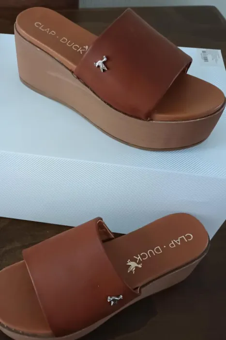 Plataformas cafes, corte sintético,marca clap duck