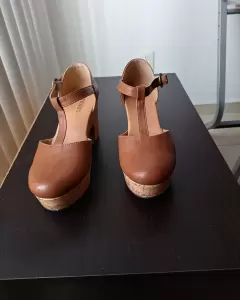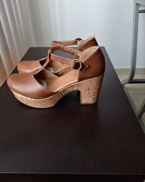 Bonitas plataformas color café marca Andrea no 24 cm tacon de 9 cm. En perfectas condiciones. Solo un uso