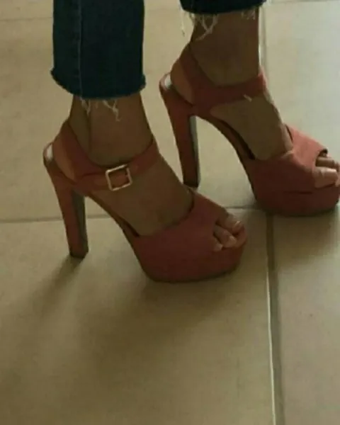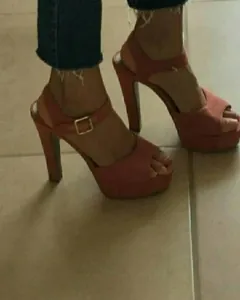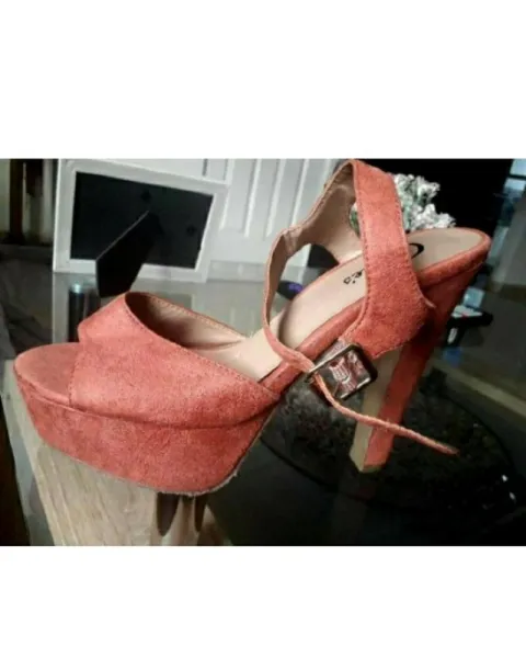 Estan en muy buen estado, pues solo las usé 2 veces, pero igual pongo usado ya que tienen pequeños desgastes que en nada afectan su uso (no es suciedad). El color es naranja durazno, la verdad estan muy padres. El tacon es de 12 cm. Las vendo pues no puedo usar tan altas. Mi pie es gordito y me quedan perfectas.
