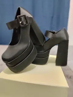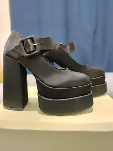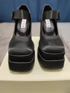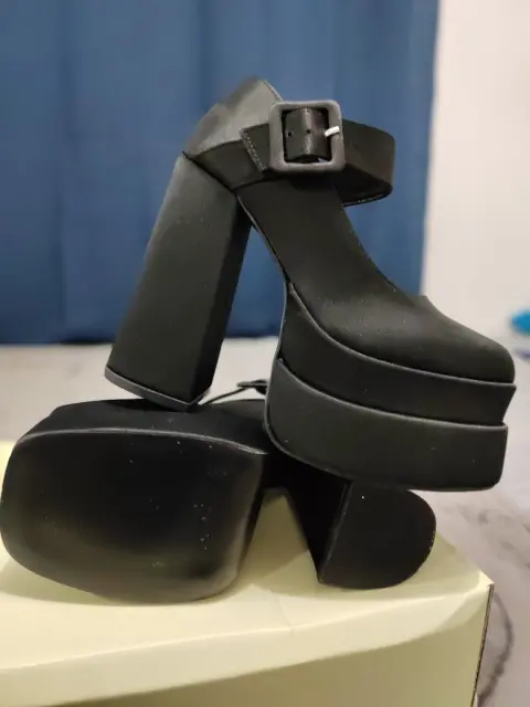 Plataformas tipo Bratz 💗 completamente nuevas. Color negro,material tipo satín,con pulsera ancha para un mejor ajuste. Talla 3 (fiel a su número) alto de tacón 13.5cm, plataforma 6.5 CM. Muy cómodos y sin detalles,se entrega en su caja 💯✨