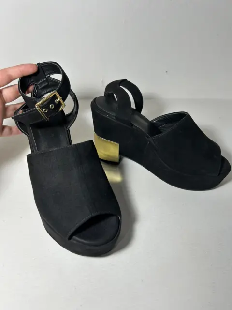 Plataformas negras con detalle doradoMarca: WESTIES23MXCondición: usados, tienen unos ligeritos detalles en la parte dorada que no se notan a simple vista