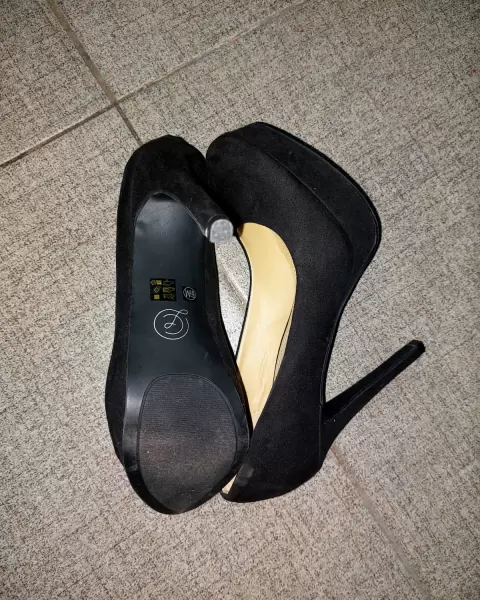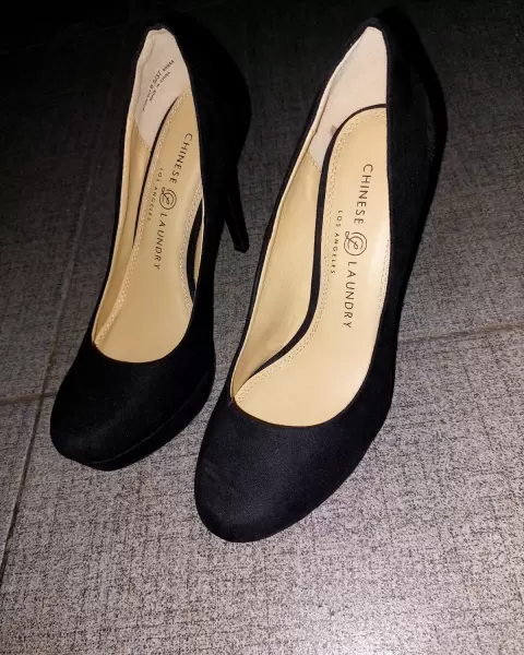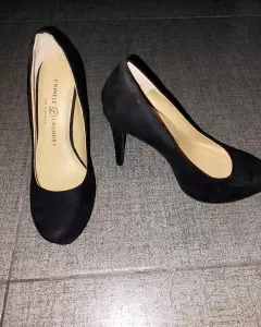 Preciosa zapatilla número 23.5. Preciosas zapatillas color negro en material nubuck, tacón # 12 nuevas sin caja original