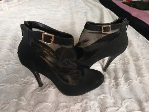 Preciosas zapatillas negras de gamusa!. Gamusina negra, altura de tacón 10, número 25, elegante malla transparente! Prácticamente nuevos!