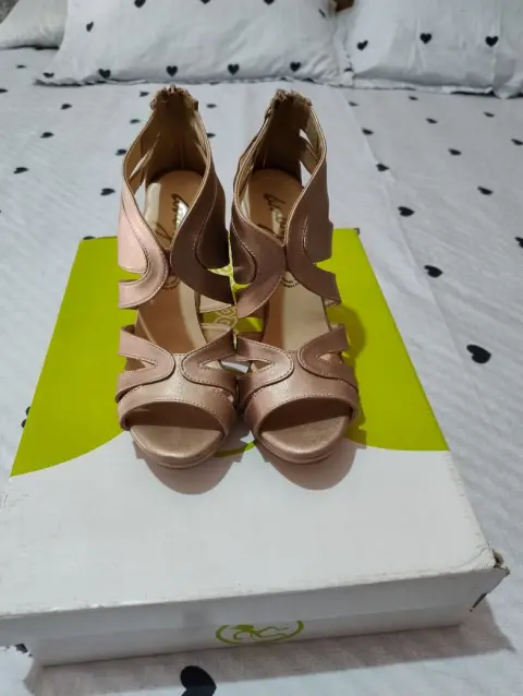 Sandalia de tacón. Sandalia de tacón tipo botín con cierre en la parte trasera, color oro, casi nuevos, solo los use en dos ocasiones