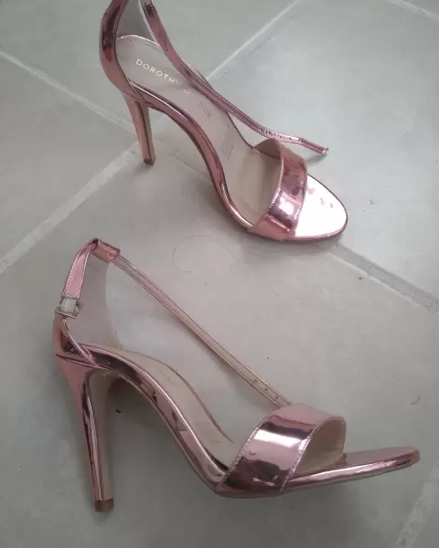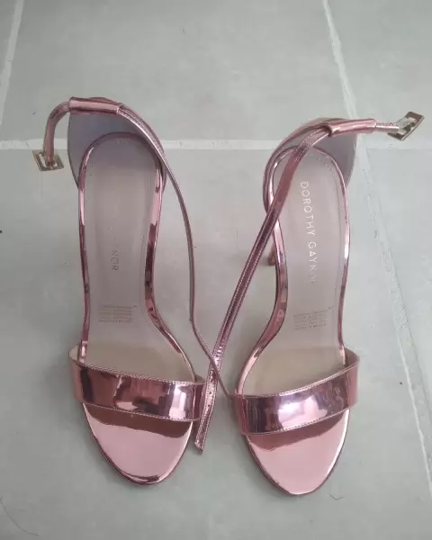 Sandalias de tacón Dorothy Gaynor. Sandalias rosegold Dorothy Gaynor, número 6, sin detalles, un solo uso