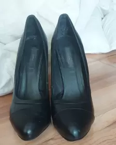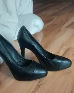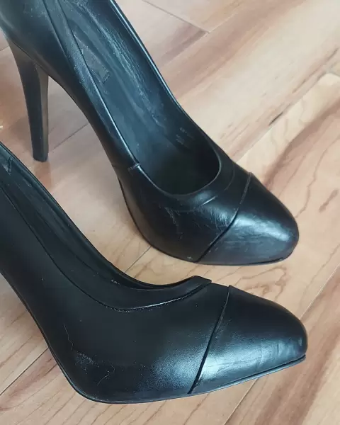 Stiletos con plataforma. Stiletos, tacón delgado,, pkataforma de piel color negro.Talla 4.5