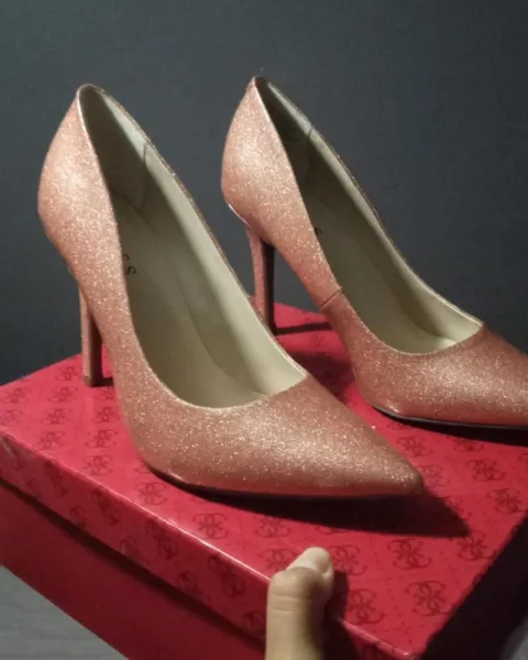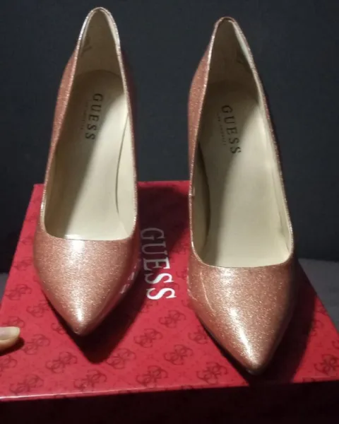 Stiletos NUEVOS GUESS. Stilettos marca GUESS NUEVOS, color rosa brilloso en acabado liso, tacón de 10 cm, combinables y bonitos..