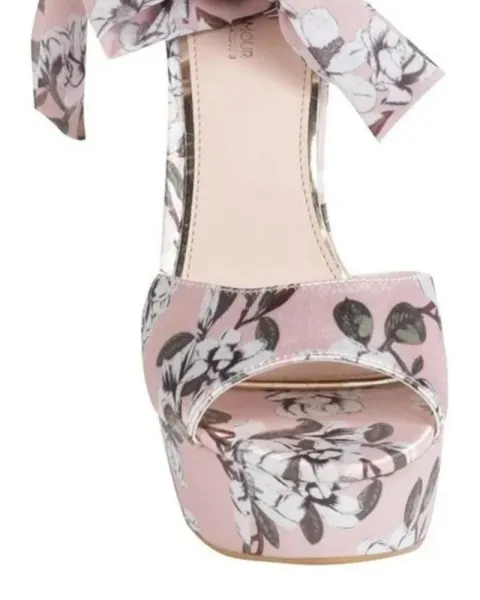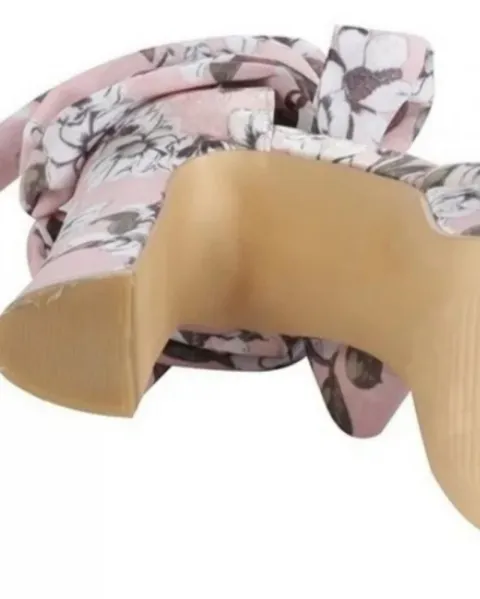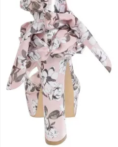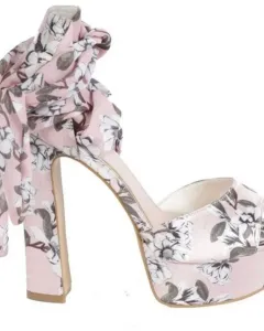 Tacón de plataforma rosa con flores. Tacón de plataforma con cordones ajustables, tacón de 13 cmTalla 22, 23, 24, 25, 26, 27 consultar con el vendedor