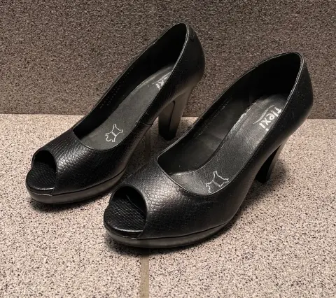 TACÓN NEGRO. TACON PUNTA ABIERTA 3 FLEXY / SEARSHECHO EN MEXICO TACON 10 CM / PLATAFORMA FRONTAL 1.5 CMNUEVOS / SIN CAJAPIEL BECERRO