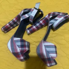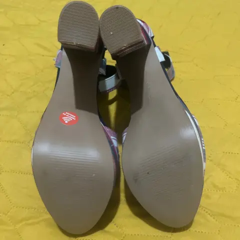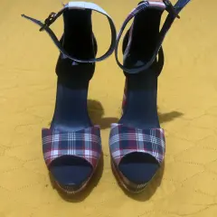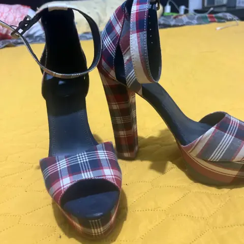 Tacones altos de 12 cms. Preciosos tacones en multicolor, de tacón cuadrado súper altas de 12 cms, con cinturón con hebilla