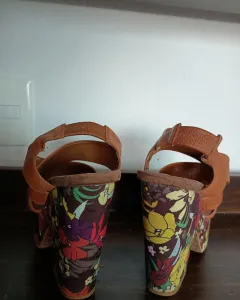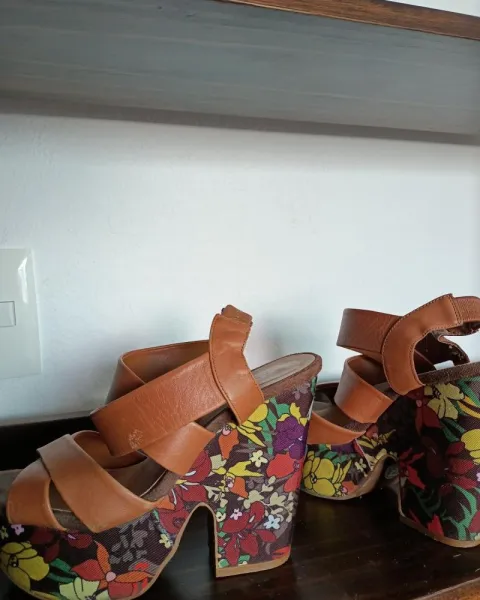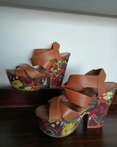 Tacones cafés con plataforma floreada