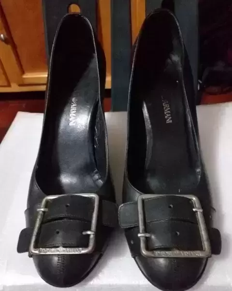 Tacones Emporio Armani. Hermosos zapatos de tacon de Emporio Armani en perfecto estado. Tiene detalles de uso normal, no rotos, solo un poco de desgaste en la suela y la tapa del tacón y la hebilla esta un poco rayada son detalles que no afectan su diseño. Vienen siendo ideales para un 3 1/2 o 4. Son de piel y quedan de 10 con una buena boleada.
