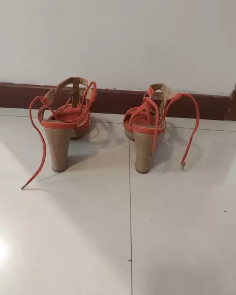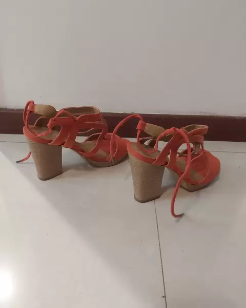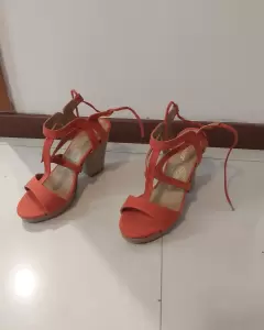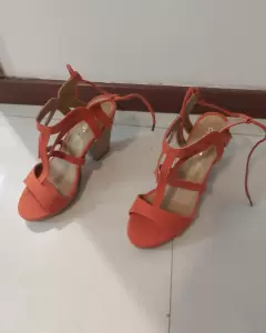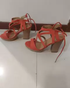 Tacones naranjas. Tacones naranjas con tiras al rededor del tobillo