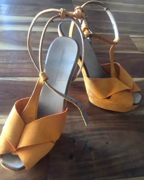Lindos tacones zara, de gamuza. Color mandarina, tienen un poco de plataforma. Sin detalles!