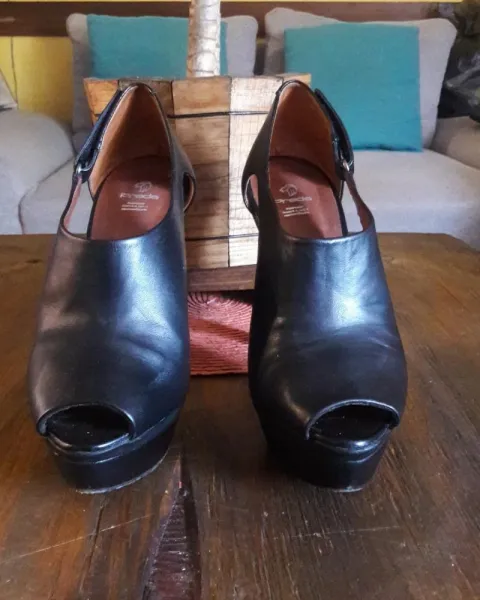 Tacones negro marca Prada, punta y lados descubiertos, en perfecto estado, tiene un repuesto de las tapas del tacón. Lucen geniales!