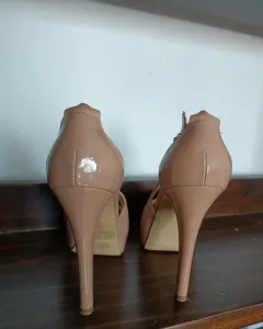 Tacones nude Guess. Material de charolEl tacón mide 11 cmSon originalesTalla 6 1/2 U.S.Tiene un detalle en un lateral