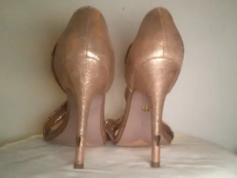 Tacones Rose Gold,talla 4,cinta frontal y delantera. Tacon de 10 cmSuela minimamente desgastada