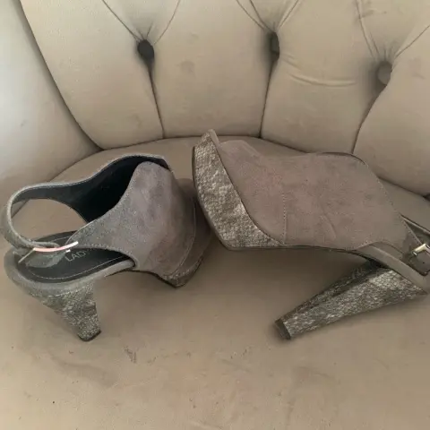Zapatila gris. Zapatilla gris plataforma muy cómodas ante y piel