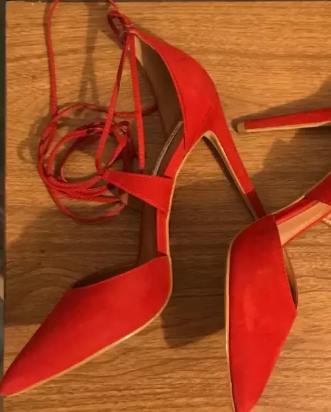 Zapatilla. Hermosisima zapatilla de ante en color rojo