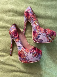 Zapatilla. Zapatilla de la marca Andrea del No 3 con tacón del Número 14 floral con muchos colores