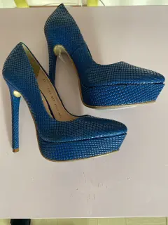 Zapatilla Andrea color azul de textura como piel de víbora del número 3 y altura de tacón 14 cm