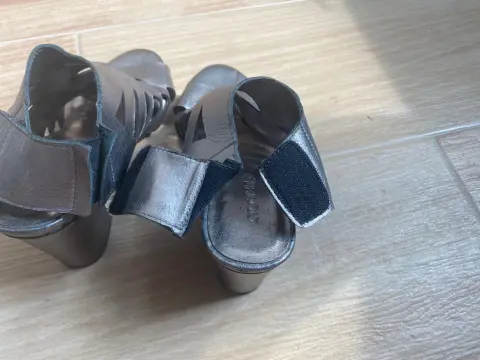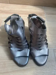 Zapatilla. Hermosas zapatillas color gris metálico, perfectas para salir de noche.