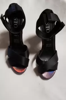 Zapato negro con correa en el tobilloverifica las fotosen una de las fotos tiene un pequeño rasguño.