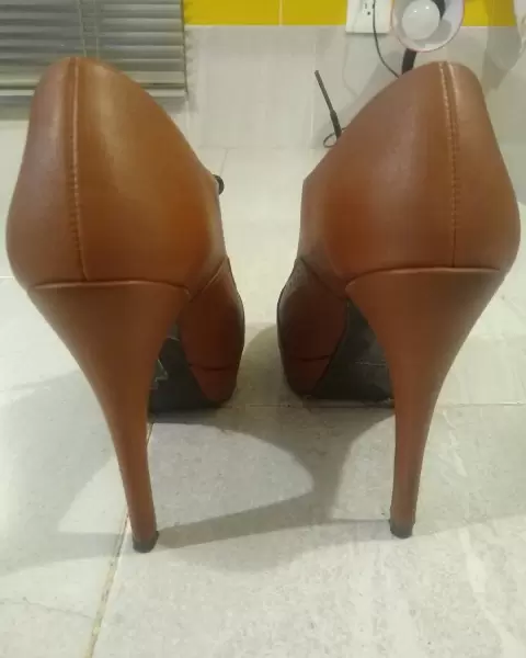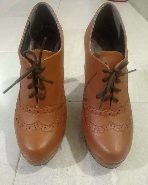 Hermosa Zapatilla tipo Bostoniano, (Dorothy Gaynor)color shedron de pielnúmero 4.5 Altura de tacón 12 CMSin detalle alguno