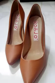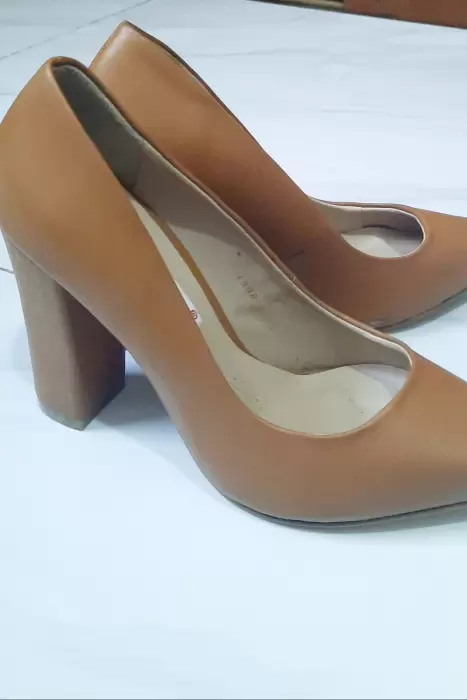 Zapato cerrado con tacon ancho, color camel en buenas condiciones una sola puesta.