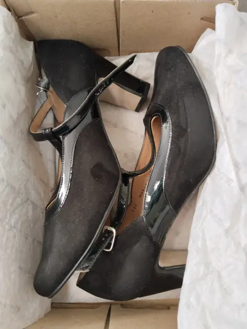 Zapatilla con correa. Negro, aterciopelado, elegante. Tacón 7 cm
