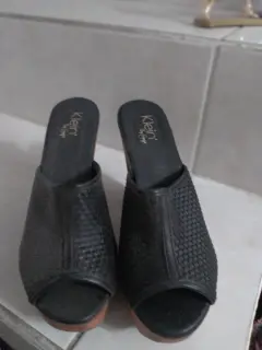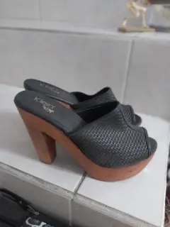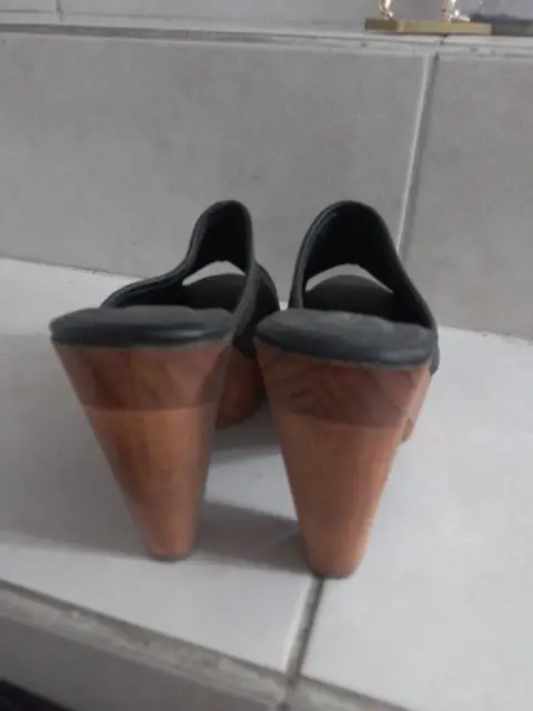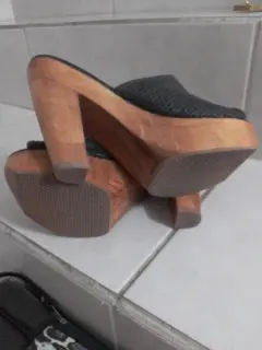 Zapatilla con tacón 12 madera. Zapatilla descubierta de atrás talla 5 de la marca Klein como tejida del frente
